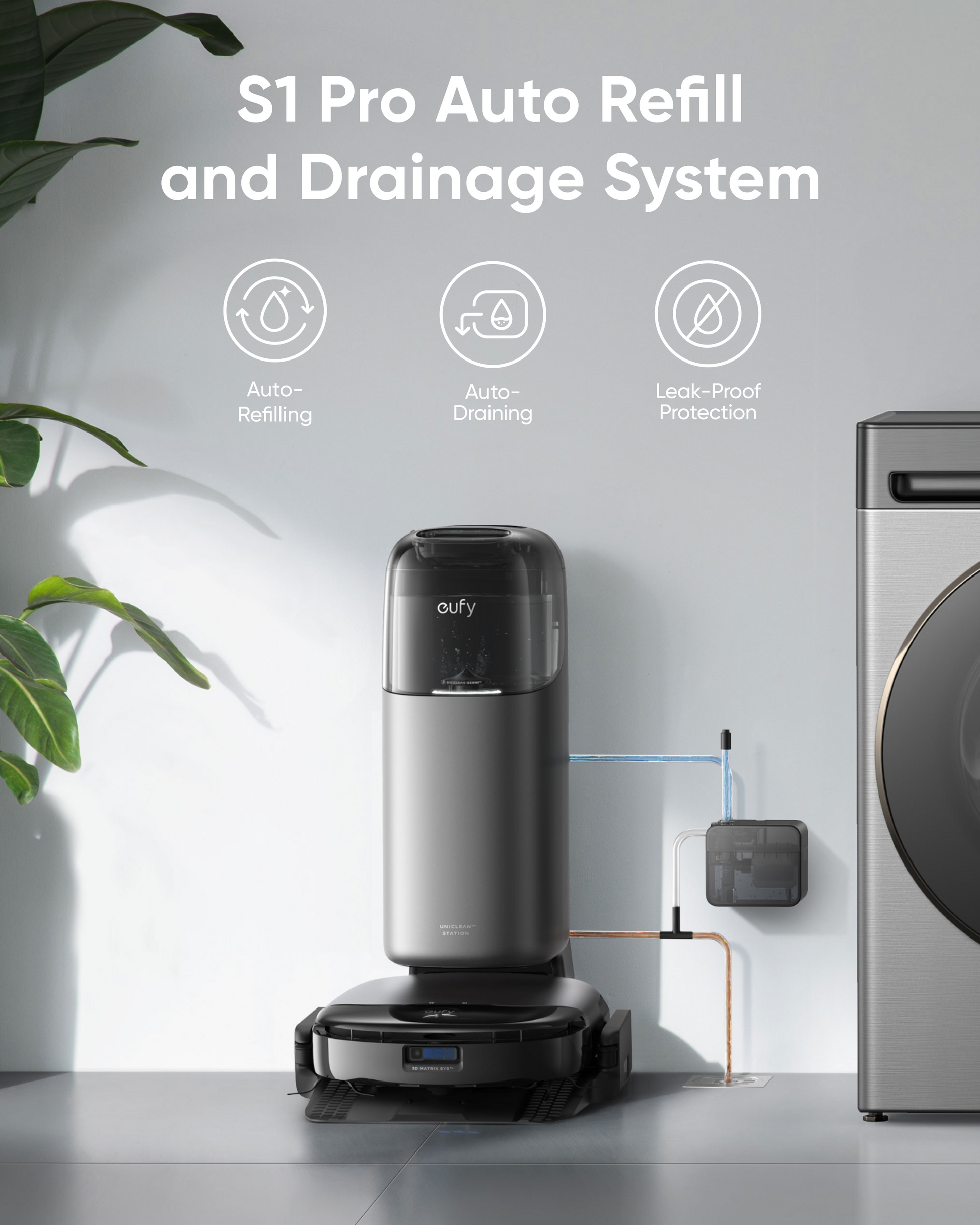 eufy Accessory-Auto Water Refill and Drainage System, Auto-Refill and Drain Module, Compatible S1 Pro Hydrojet